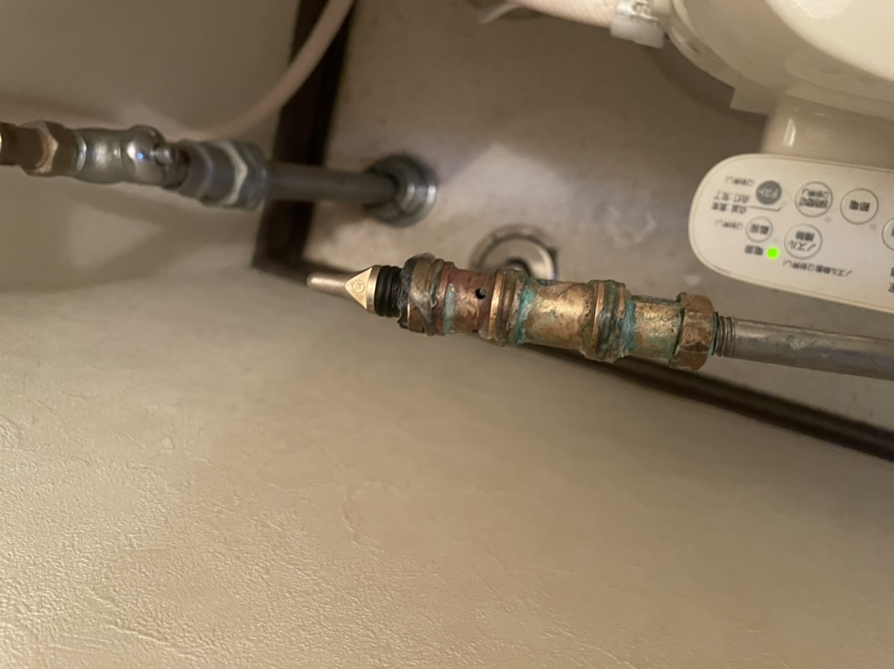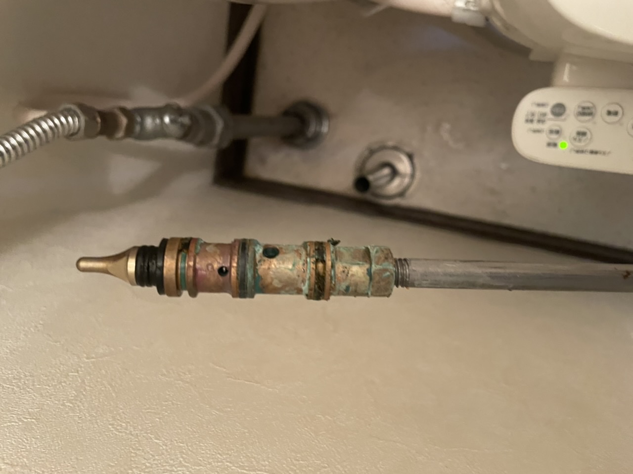 トイレにある、水抜栓のパッキン劣化による水漏れでした