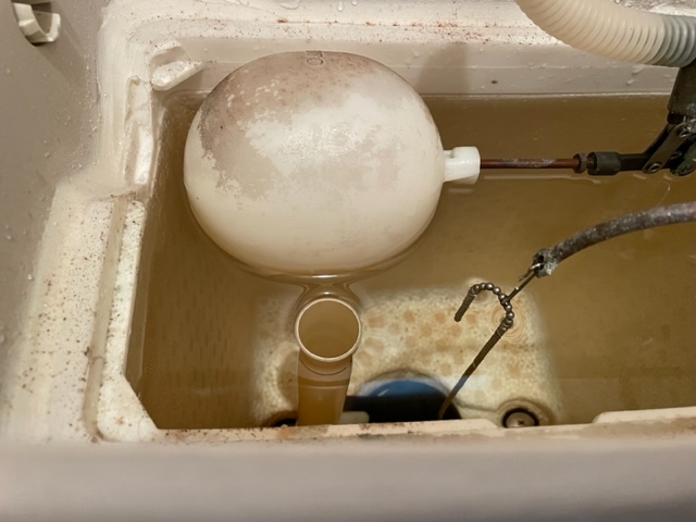 原因はタンク内の部品が劣化していたせいで、ボールタップを交換することで症状は改善しました。