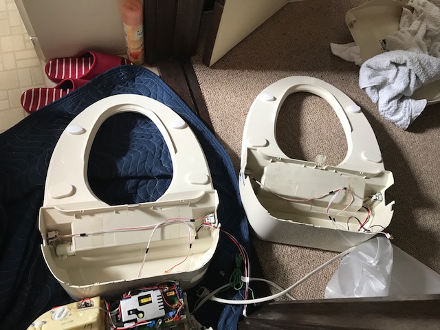 一旦便座を取り外し、解体して上部カバーと便蓋を新しいものに取り付けなおしました。