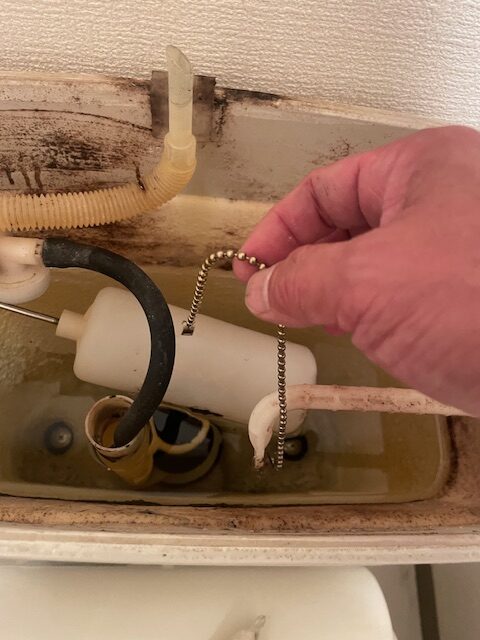 タンク内を確認したところ、ゴム玉のチェーンが切れていたため水が流れてこなかったようです。
