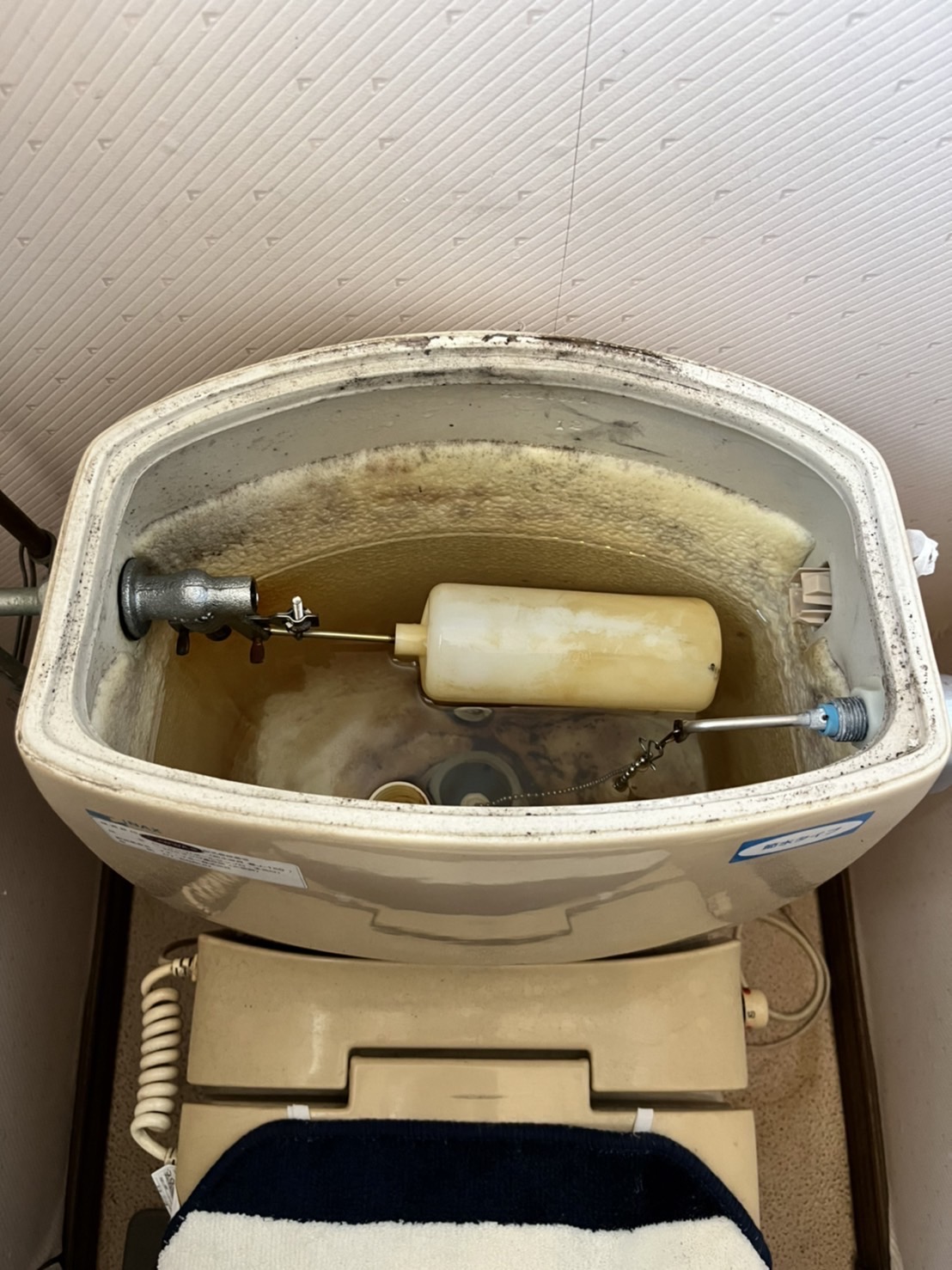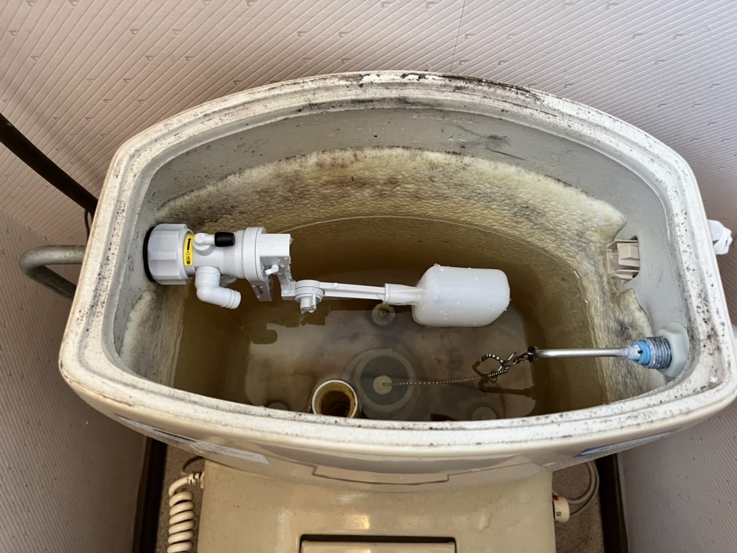 原因は水を開閉する役割のボールタップの劣化が原因で、年数も経っているため交換することで症状は改善しました。
