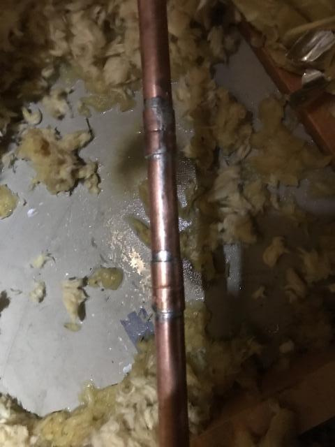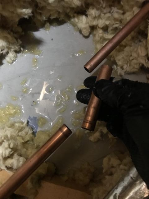 水漏れしている箇所の銅管を切除し、再度溶接にて補修し、症状は改善しました。