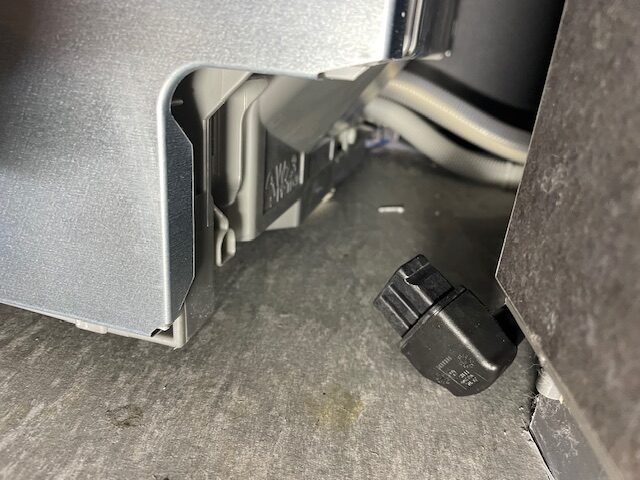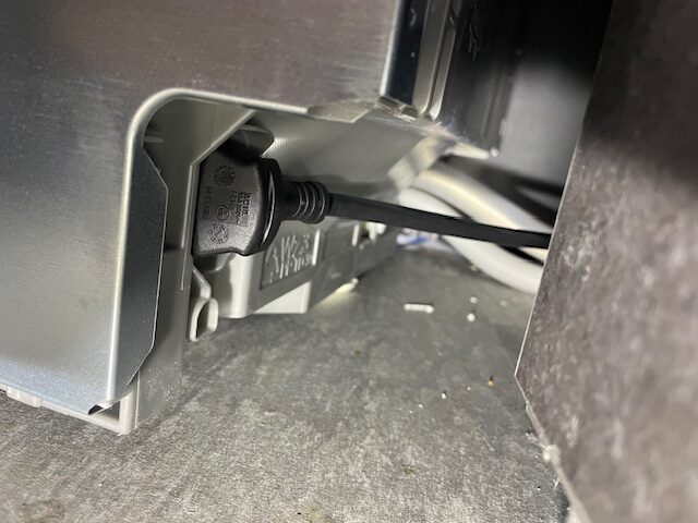 食洗器をキッチンの収納部から引き出すと、電源コードが抜けていたため、こちらを装着しなおして改善しました。