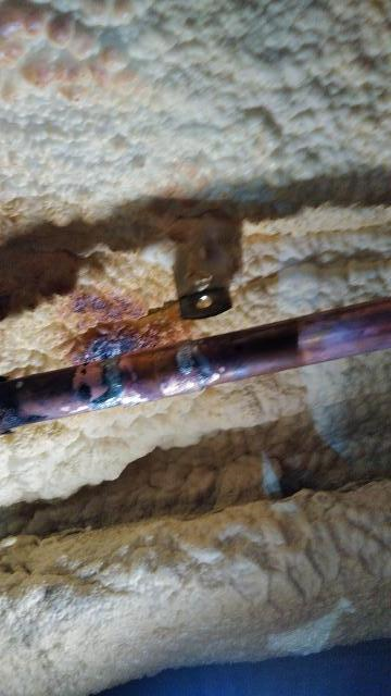すると、銅管の一部が劣化によりピンホールしており、こちらの補修作業を行いました。