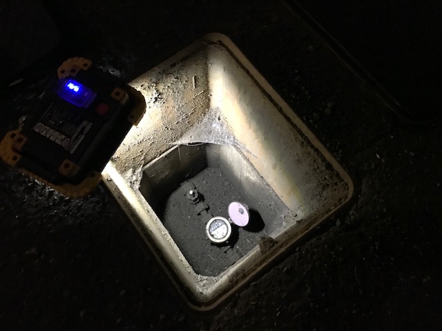 すると、駐車場の地面にある水道メーターの部分で止水がされていました。
