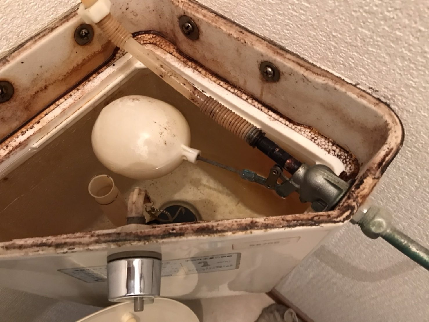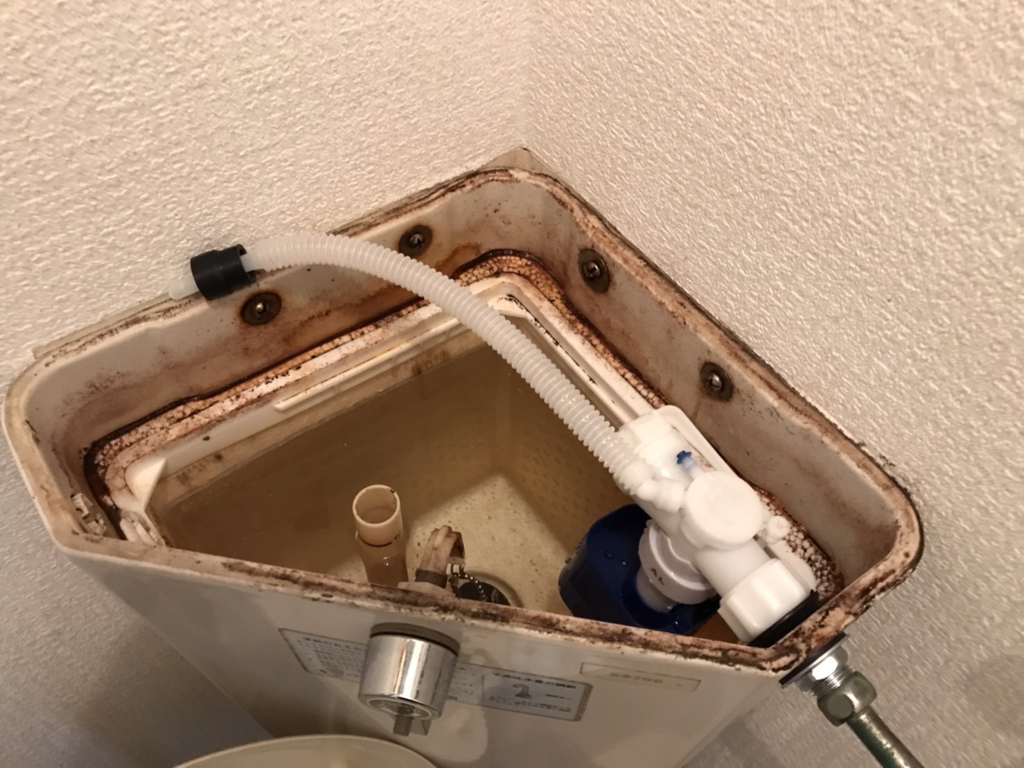 原因は水の開閉を担うボールタップという部品の劣化によるもので、こちらを交換することで症状は改善しました。