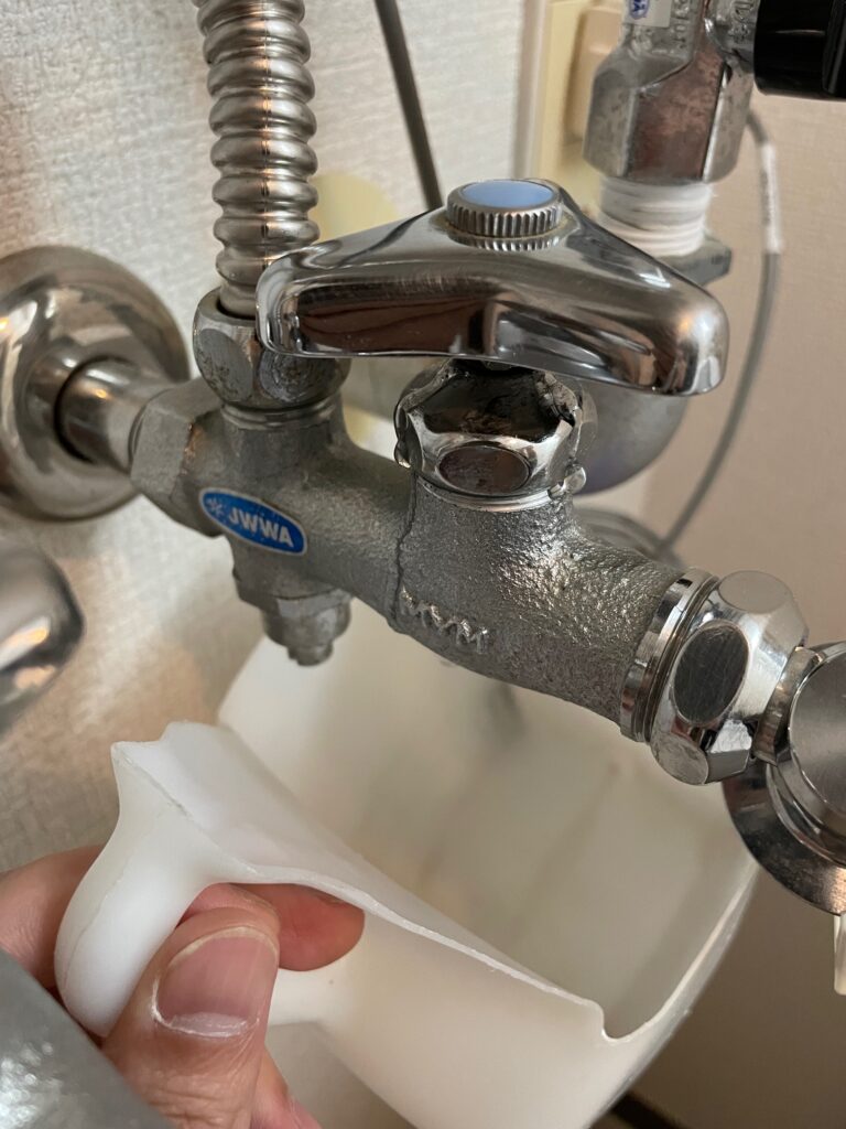 ハンドルを開けると水がポタポタ漏れてくる状態でした。
