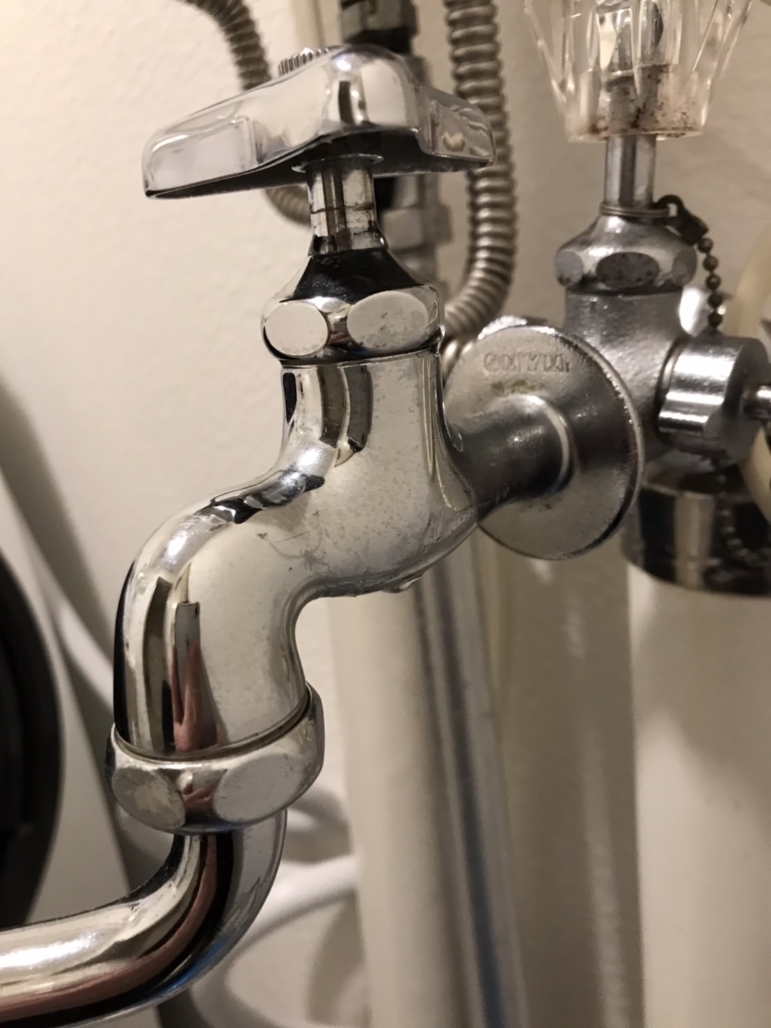 引っ越して来たばかりで早速洗濯機を使用したそうですが、回している最中に蛇口の水漏れに気付いたそうです。