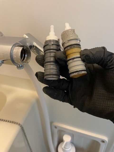 事前に一度訪問して部材の特定をしていたので、用意しておいた切替弁ユニットを交換して改善しました。