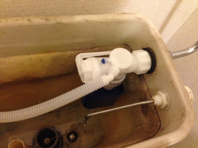 本日は、トイレタンク内から水漏れの音がして止まらないとの依頼でした。早速、訪問し点検しているとトイレタンク内のボールタップが不良を起こして水が止まらない状況でした。”(-“”-)” お客様に原因と修理費用を伝えて、了承後、ボールタップの交換を致しました。