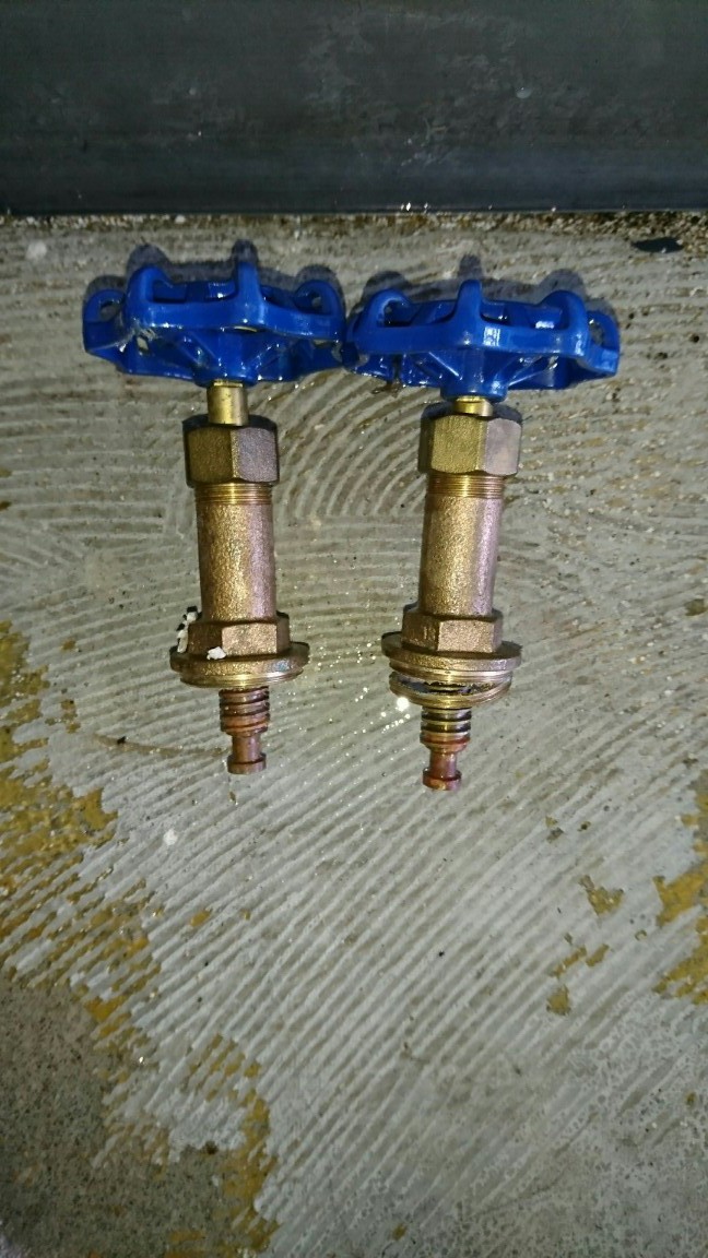 本日は飲食ビルのオーナー様より漏水の依頼があり出動。現場に到着するとビル全体が水浸しです( ゚Д゚) 消防も出動したようでタイトルに付けたように、ここまでくると『事故』ですね。漏水箇所は天井裏にある水道メーターのバルブのハンドルが凍結によって破損したことによるものでした。二か所のバルブが破損しており、このままですとビル全体の水道が使用できないため、適合するバルブを大急ぎで調達して交換、通水して問題ないことを確認して完了です。テナントが入っているビル等で水が使用できないのは大変ですから即日対応できて良かったです。