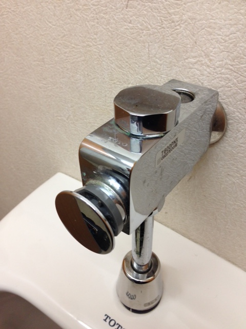 症状は、小便器の押しボタンを押して水を流したところ、それ以来止まらなくなったとのことです。