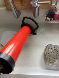 外に繋がっている排水桝を見てみても詰まっている様子はなく、近くでの詰まりが考えられます。