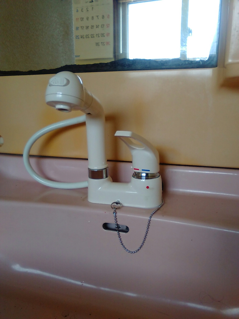 本日は、前に訪問して見積もりしていた、お客様の洗面水栓交換を致しました。後日、注文のお電話を頂いてたお客様でした。水栓自体が劣化し水が止まらない状況と破損があり、交換をしたいとの事でした。今回は、後継機種的な水栓に交換させていただきました。お客様も綺麗になり前より使用しやすくなった蛇口にお喜びでした(^^♪