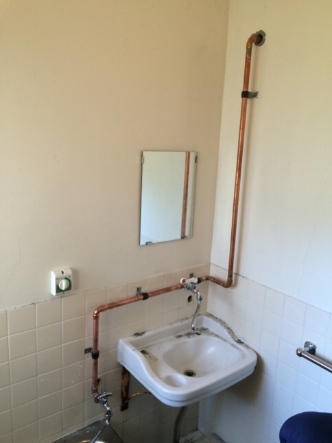 本日は、以前に水道管の引き直しの見積もりをしていたお客様宅、見積もり後の本工事にお伺い致しました。!(^^)! 水道管は鉄管でして水圧も錆により低くなっていたので交換したい言う事で引き直し工事です。今回は、台所ライン・風呂ラインの鉄管を全部、銅管に取り替えて工事を致しました。水の出も良くなり赤水も出なくなってお喜びでした。(^^♪