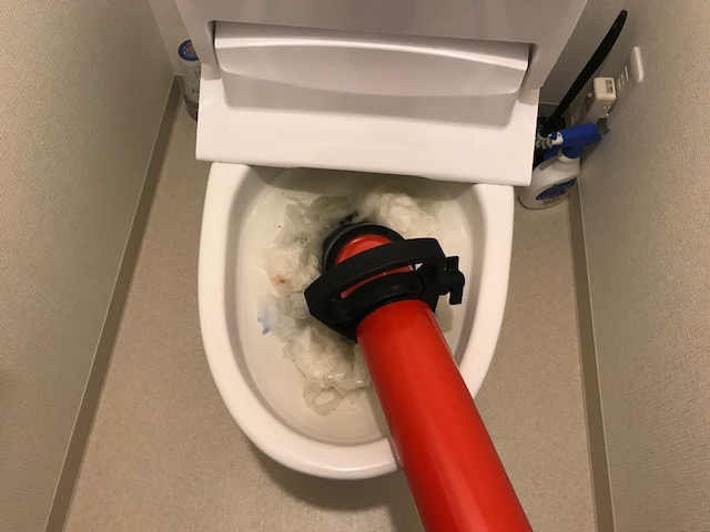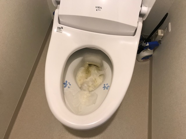 比較的新しい物件で、トイレも節水型でしたので、流し方によっては詰まってしまいますね。