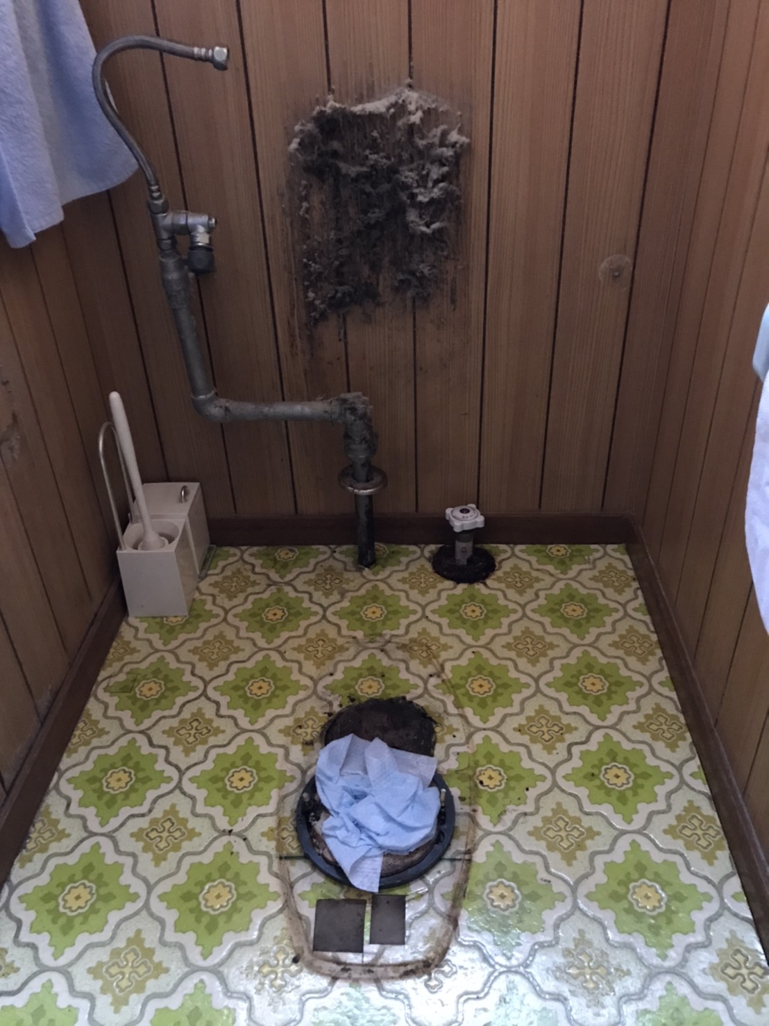 本日は、トイレの床から水漏れするとのことで一戸建てにお伺いしました。
