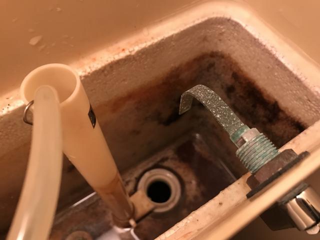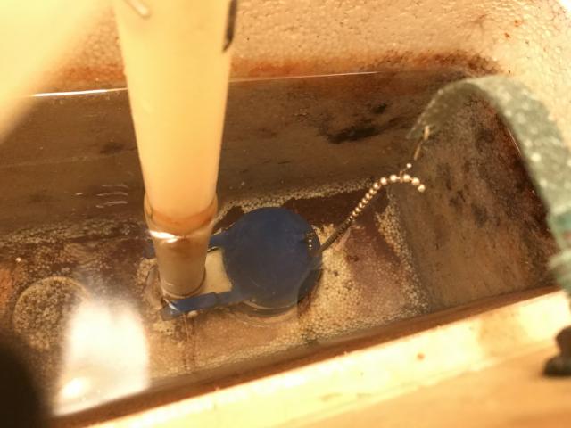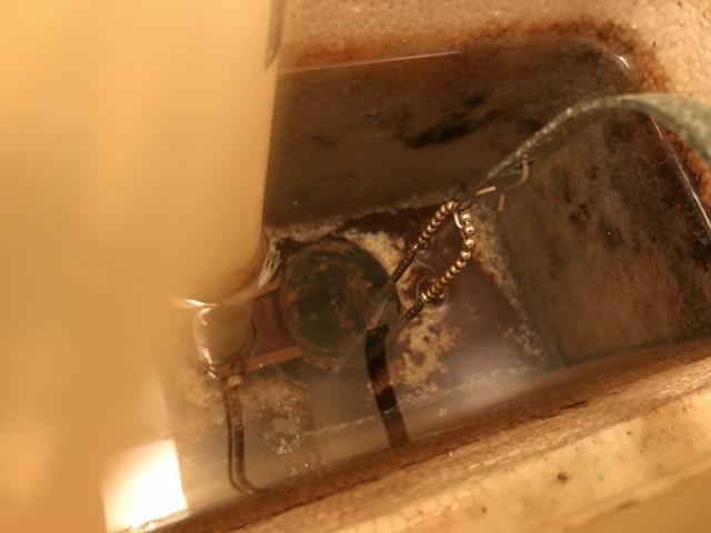 タンクの中を覗くとゴムフロートが劣化しており、その隙間から水がチョロチョロと漏れ出している状態でした。