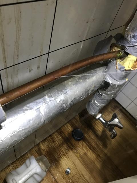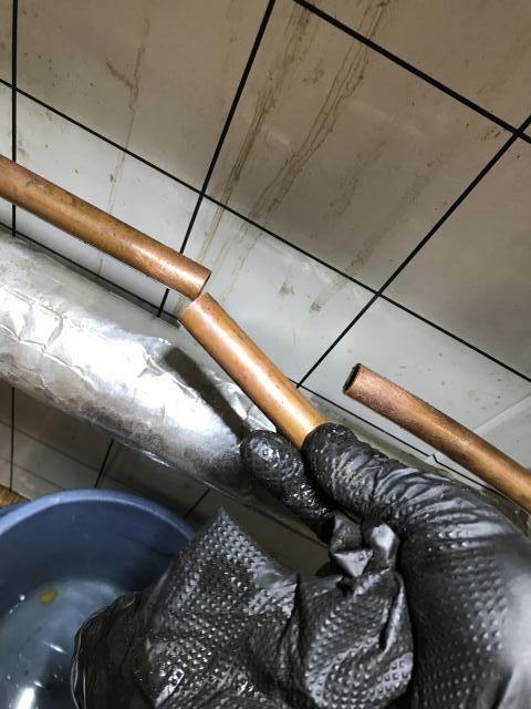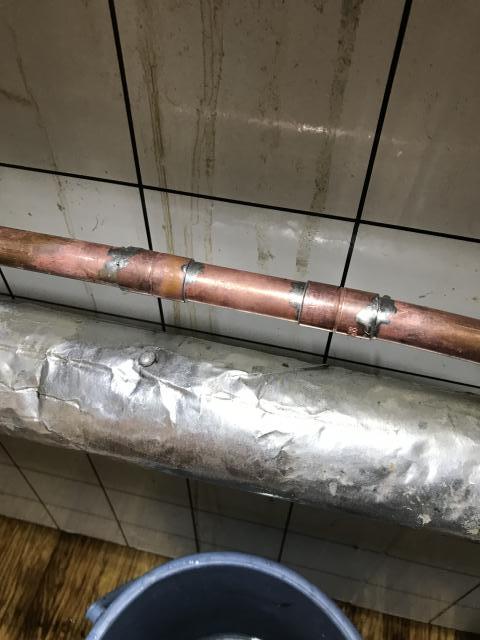 銅管の配管のため、噴き出している部分を切除し、再度溶接し直して作業は完了です。