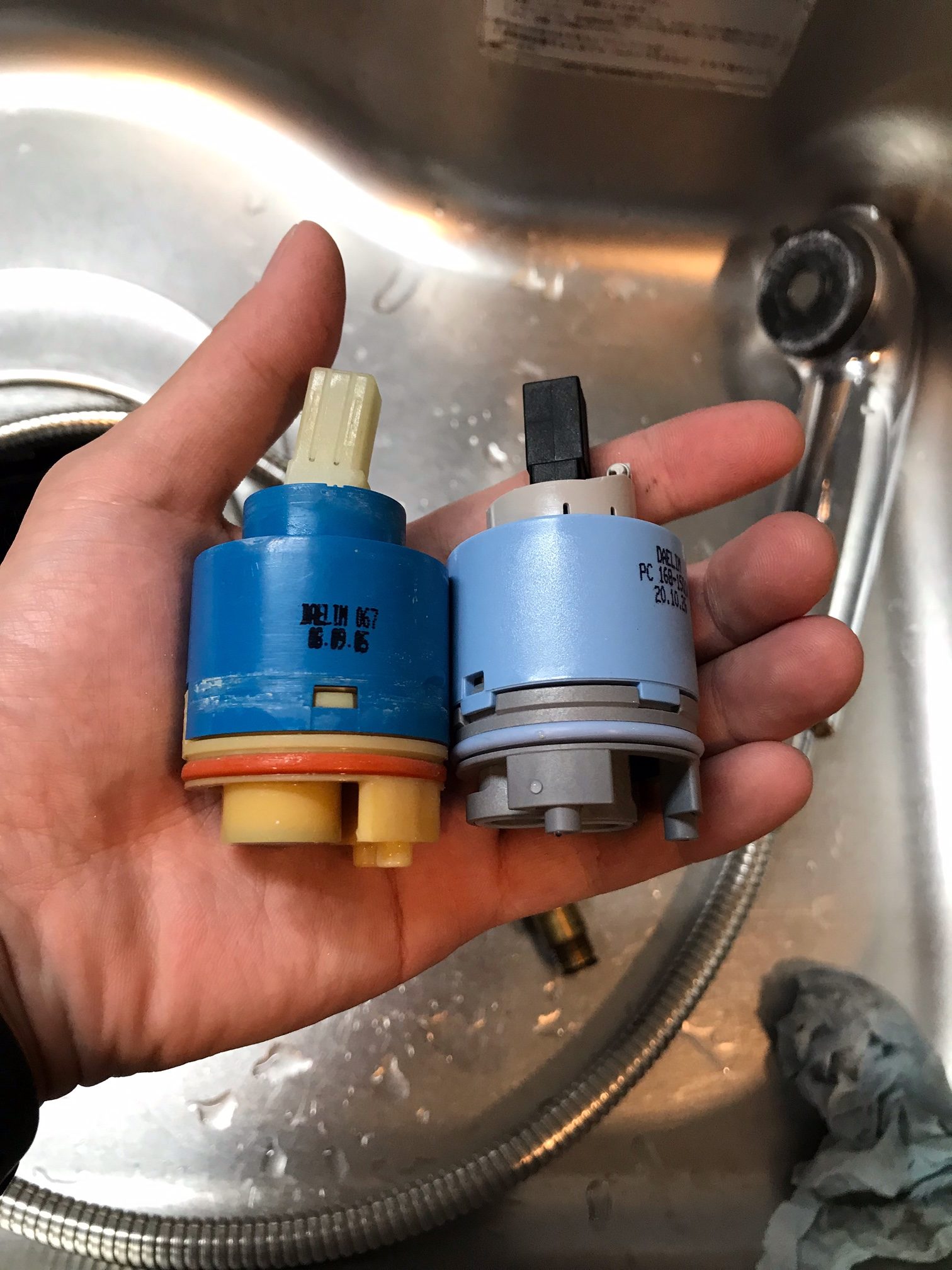 よく見るとハンドル下の隙間から漏れてきており、内部のカートリッジバルブに故障が見受けられました。