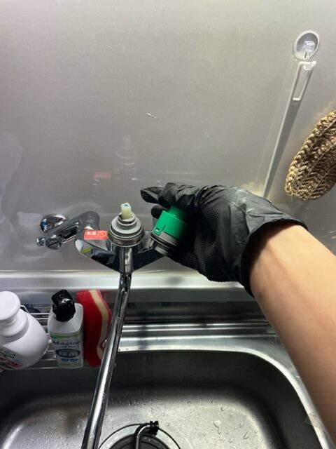 吐水パイプは根本が腐食しており、カートリッジは劣化していたので、両方交換して改善しました。