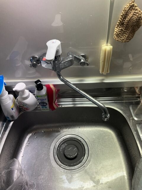 台所水栓の水の止まりが悪く、さらに定期的に吐水パイプが外れてしまうそうです。