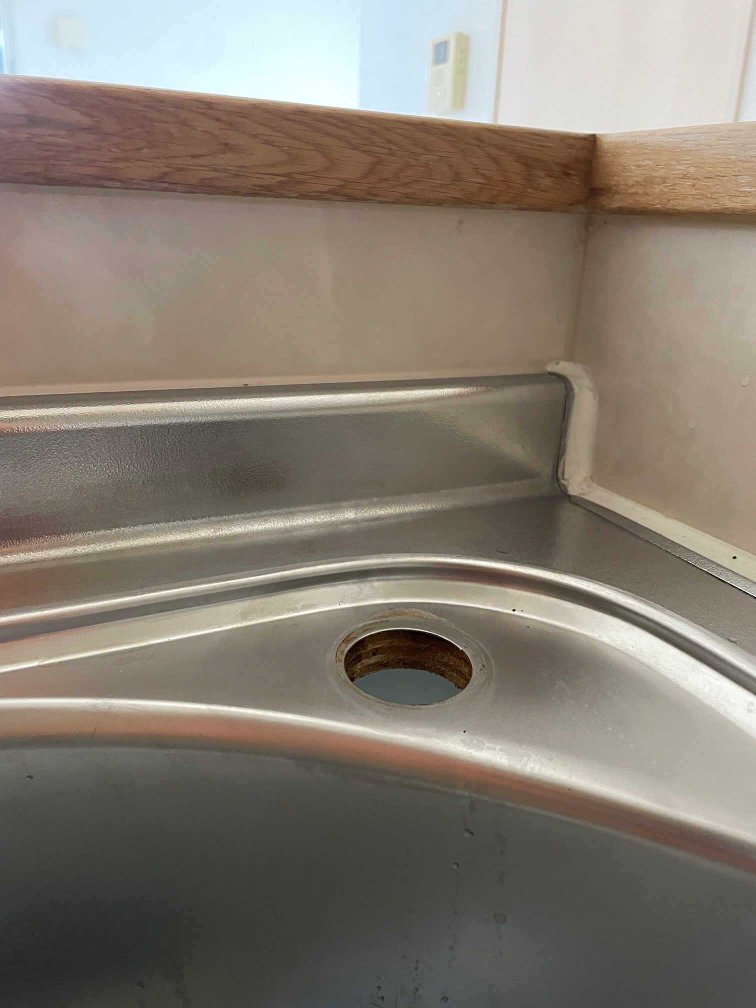 台所蛇口のシンクとのつなぎ目部分に水が溜まってしまうとのこと。