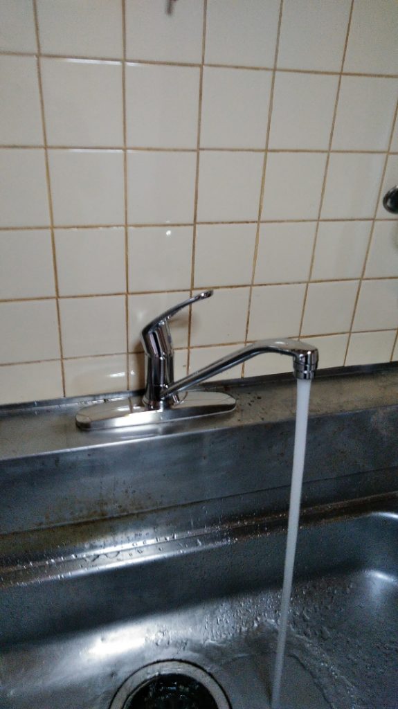 本日は管理会社からのご依頼で賃貸物件の台所の蛇口の本体の根元からとハンドルの根元の両方から水漏れしているので見て欲しいとの依頼で行ってきました。拝見すると30年以上の古い蛇口で、もうこうなると部品を交換しても蛇口自体が老朽化しているので直らない可能性が強いと管理会社に話し台所蛇口本体交換になりました。これでしばらく安心です。