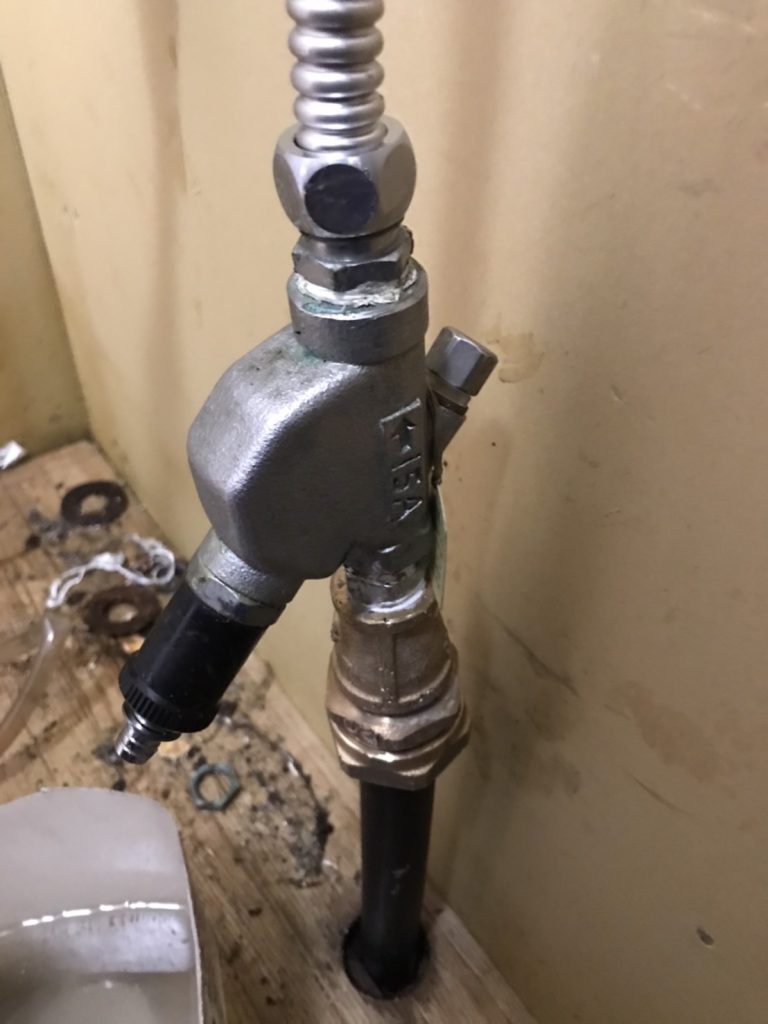 札幌市手稲区-床から出ている配管から水漏れ・・・割と多めに噴き出す