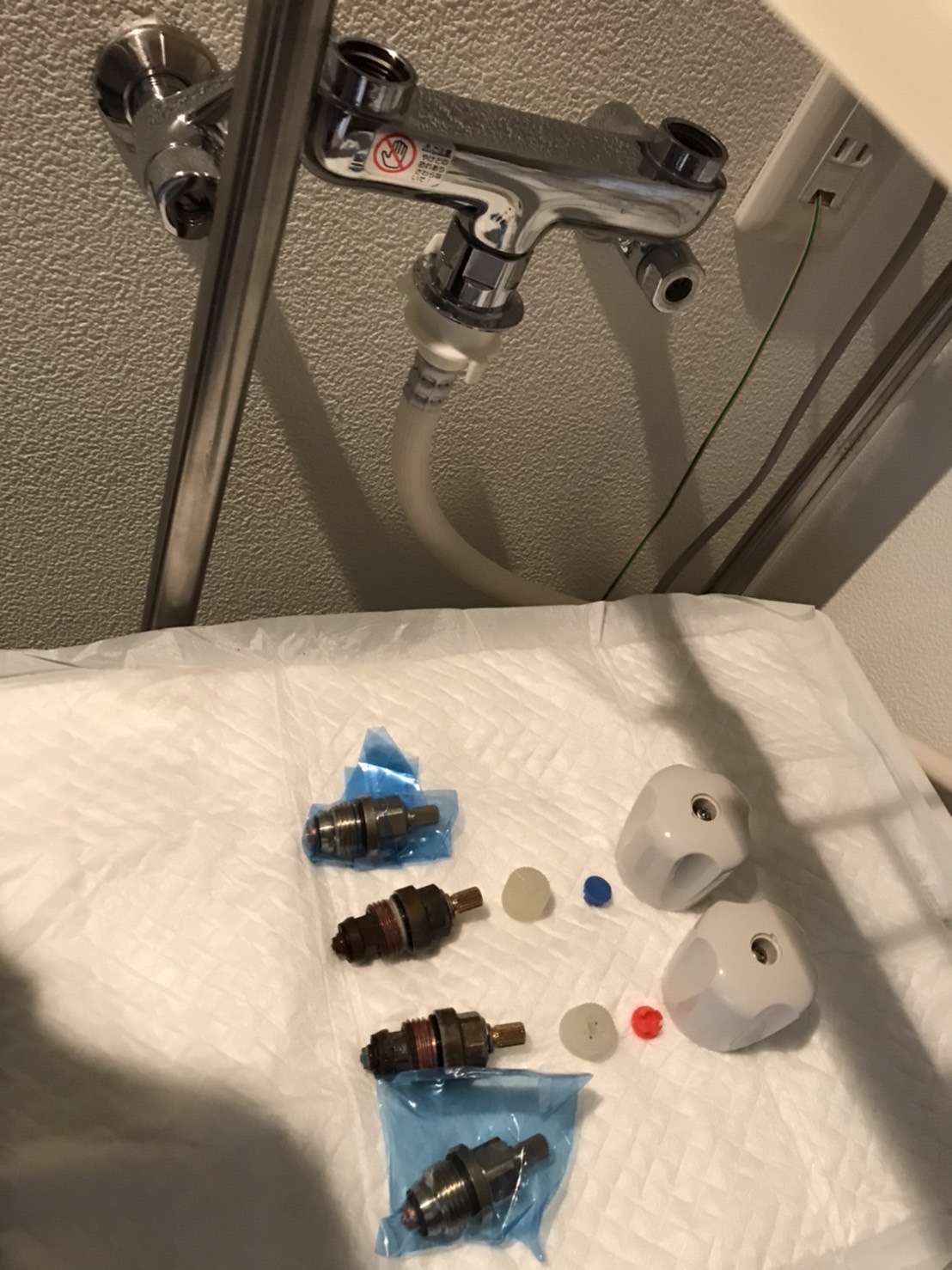 入居当初から使用している蛇口で、お湯側も水側も徐々にハンドルが重くなってきたとのことでした。