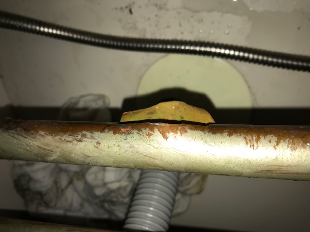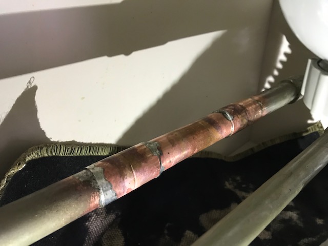 破裂した管を一旦切除し、新しく銅管で引き直して溶接し直しました。
