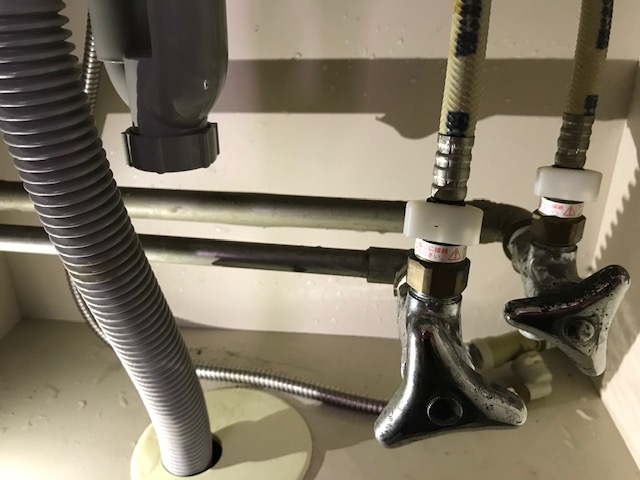 しばらく家を空けていたそうですが、帰宅して元栓を開けたら洗面所から水漏れしてきたとのことです。