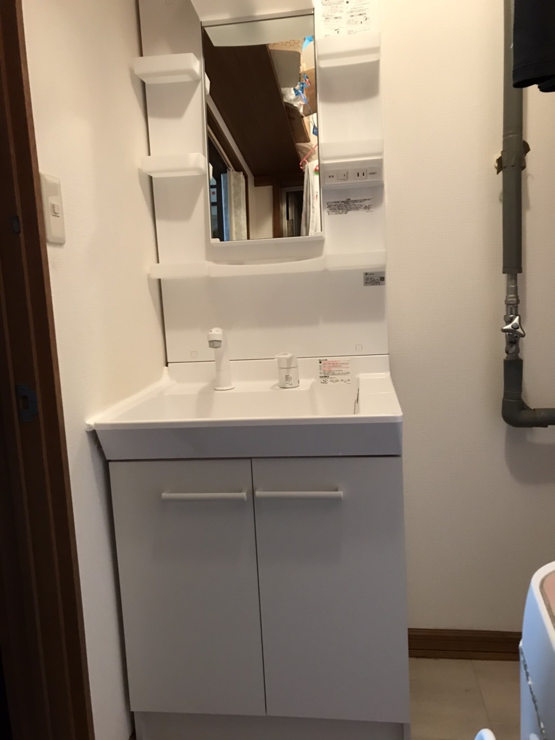 標準で洗面台の交換があり、水道管などの加工などが必要な場合は別途料金がかかりますが、特に滞りない現場でした。