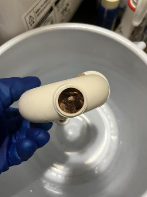 一旦トラップを解体して詰まったものを清掃し、再度取り付けて症状は改善し、気持ちよく使用できるようになりました。