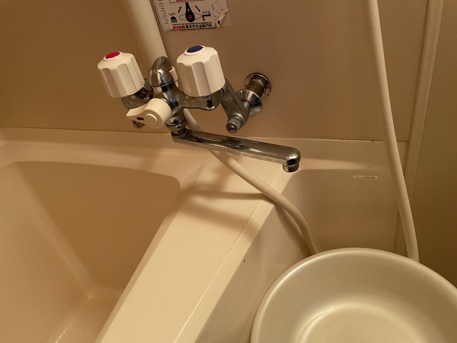 浴室には2ハンドル混合栓が取り付けられていて、湯水を自分で調節して混ぜるタイプとなっています。