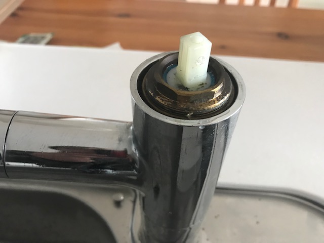 レバーハンドルを外して中を見てみると、蛇口本体上部に水が溜まっているのが見えました。