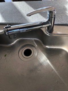 本日は台所の蛇口から水漏れするとの事でご入電頂きました(^O^)/ご訪問させて頂くと蛇口使用時にメタルホースからポタポタ水が出てきている状態でした。台所下を確認してみるとシンク下にメタルホースを収納している為台所下の収納部も少し濡れています。メタルホースの交換が必要になってきますが基本的には今ついているメーカーと型番を確認して部品を取る為後日になってしまいます。それまでの間はまともに使える状況ではない為。お客様のご希望で即日に蛇口本体の交換対応となりました。即日に修理とはいかなかったですが本体交換出来たためとても喜ばれていました(^O^)/