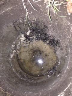 全体で詰まってると思い、外にある排水マスを見てみると、暗黒の世界に入り込んだように木の根っこが生えていました。