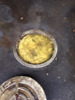清掃してると、マンホールの中には木の根っこが入り込んでいて、清掃も容易ではありませんでした。