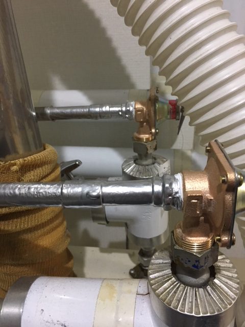本日はボイラーの排水から音がするとの事でご依頼頂きました。お伺いすると確かに常に排水されている状態でした、排水される配管が3つあり今回は安全弁の故障でした。水とお湯の2ルートあり2つ交換対応となりました、まず配管の水とお湯をある程度抜き配管を切断して安全弁を外して新たに安全弁を取り付けて配管を溶接して修理完了です、数日前から漏れているとの事で漏水証明も出して完了です。お客様も常に水が流れてて不安だったとの事で修理が終わりとても喜ばれていました。