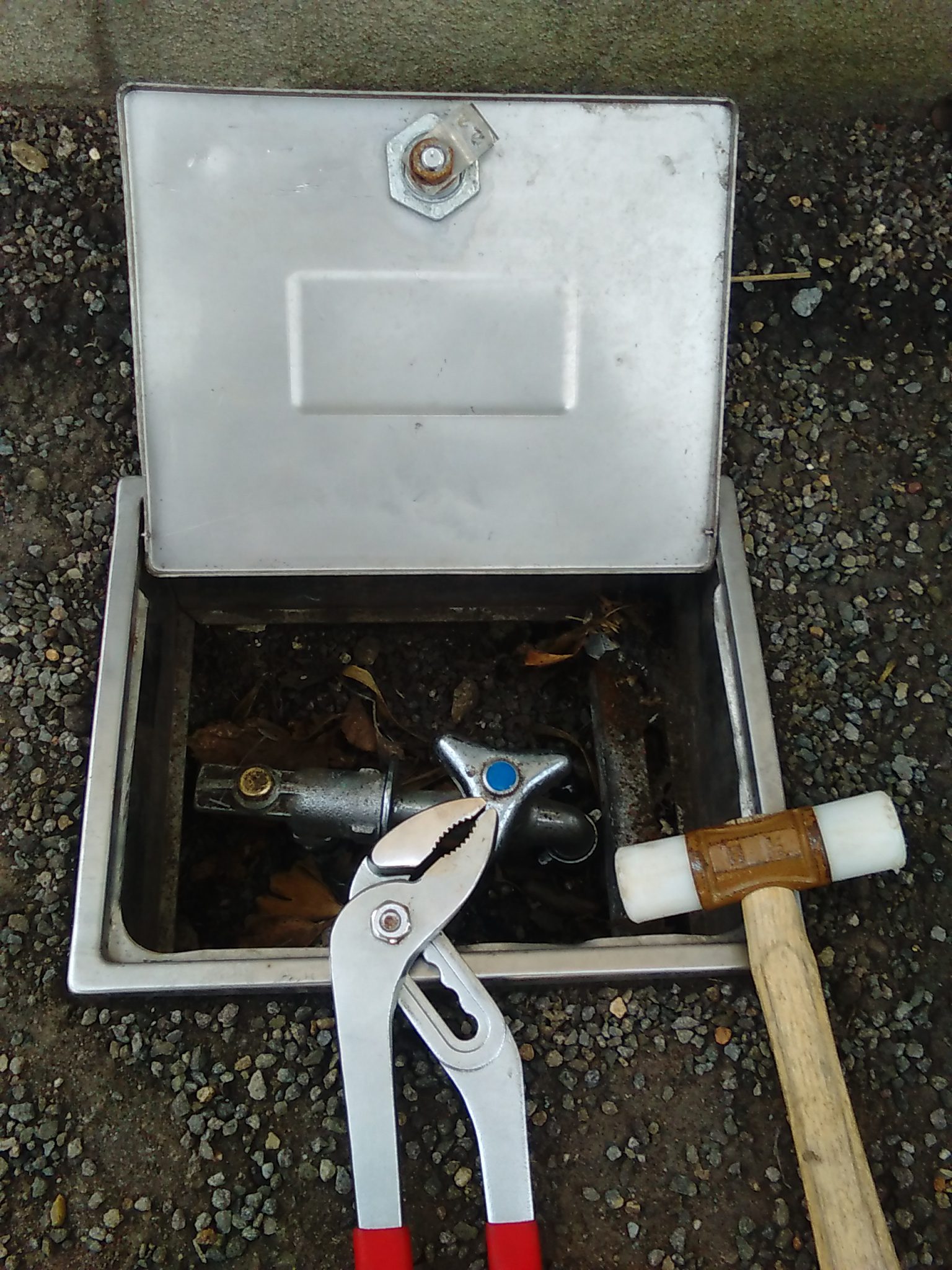 本日は、某回転寿司チェーン店様から散水栓の蓋が開かないとの出動依頼がありました。駐車場にある散水栓の蓋が折れ曲がって陥没して開かないようです。お客さんが通りそうな所にあるため間違って踏んでしまったのでしょうか? バールでこじ開けてみると完全に曲がってしまっていてこのままでは使用できません。持ってる道具を駆使して板金してみると、どうにか元通りになりました。店長さんに確認していただくと、前より綺麗になったとのお褒めの言葉をいただきましたよ(^^)v