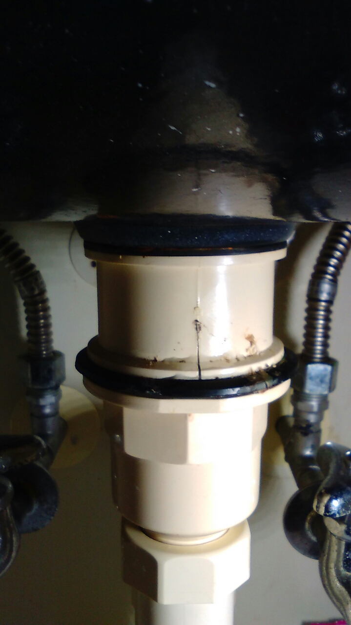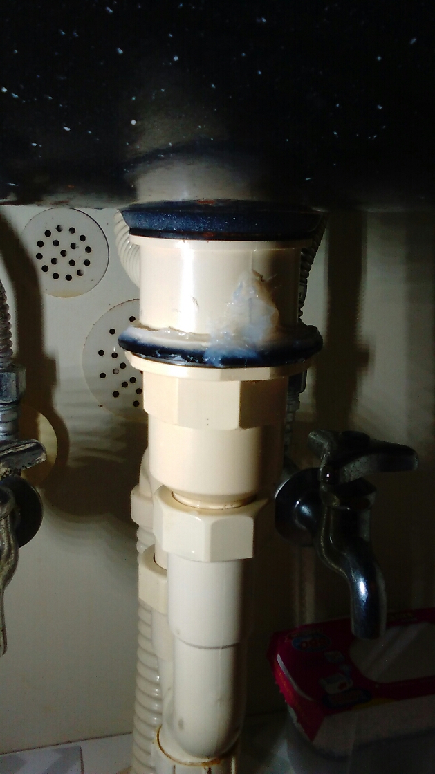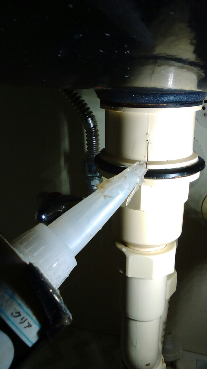 本日は洗面下から水漏れするとの事でご依頼頂きました、お伺いさせて頂くと洗面下の排水から水漏れしている状態でした。洗面台すぐ下の部分で排水管が割れている状態でした。お客様に状況を説明し排水管の部分的交換か応急処置にするかを説明した所とりあえず応急処置をして欲しいとの事でした対応としてはコーキング補修です。割れている部分と接続ぶ中心にコーキングをして完了です。