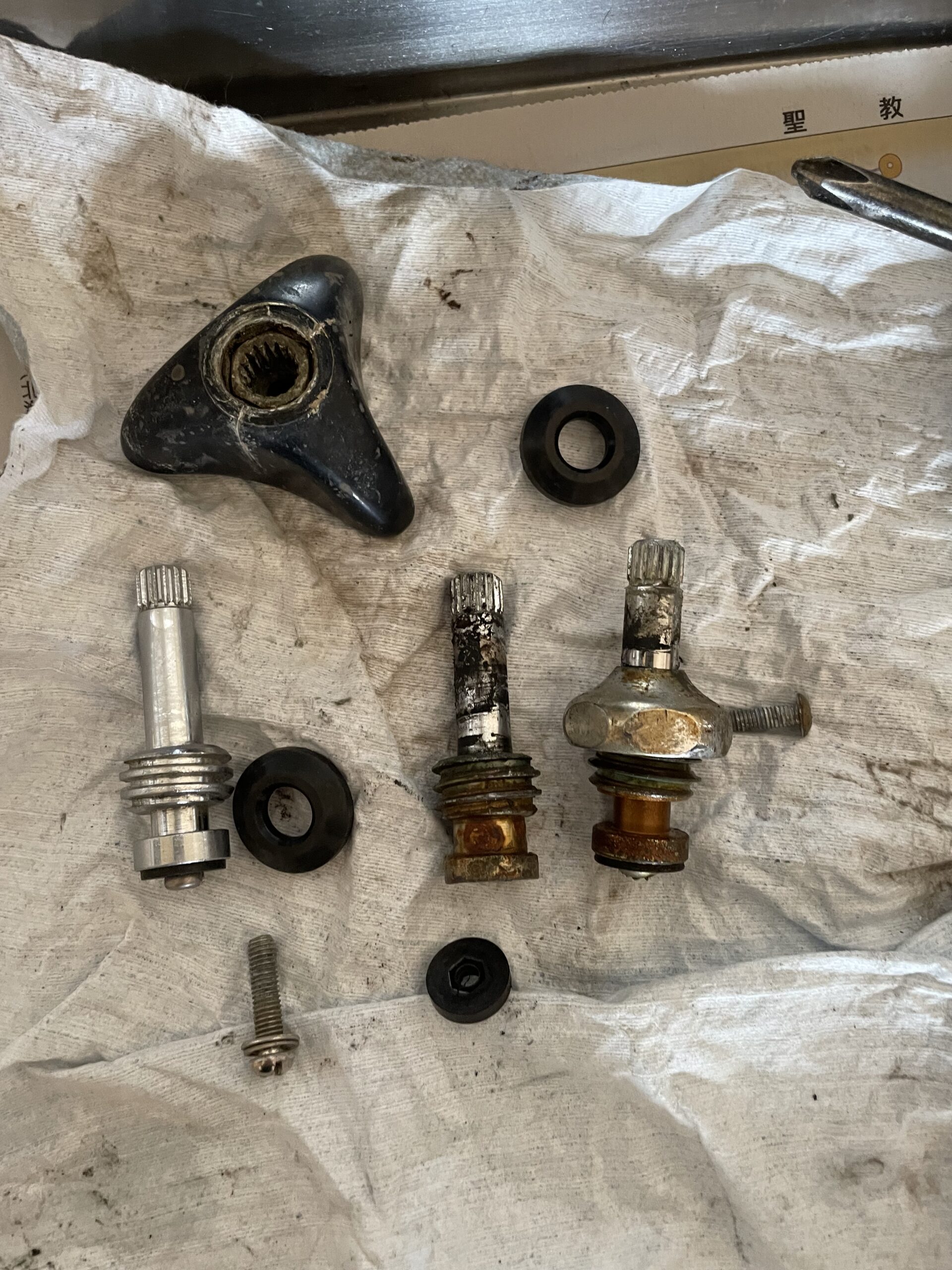 お湯側スピンドル、ハンドル交換 水側コマパッキン、ハンドル交換