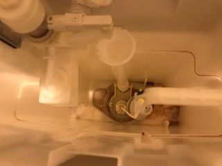 おそらくタンクに繋がっている給水管のところに問題があると思ったので外して見るとやはりそこにサビが溜まっていることで給水されない状態になっていました。