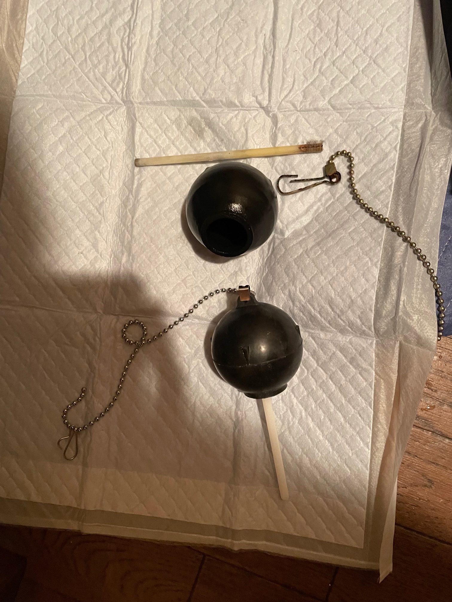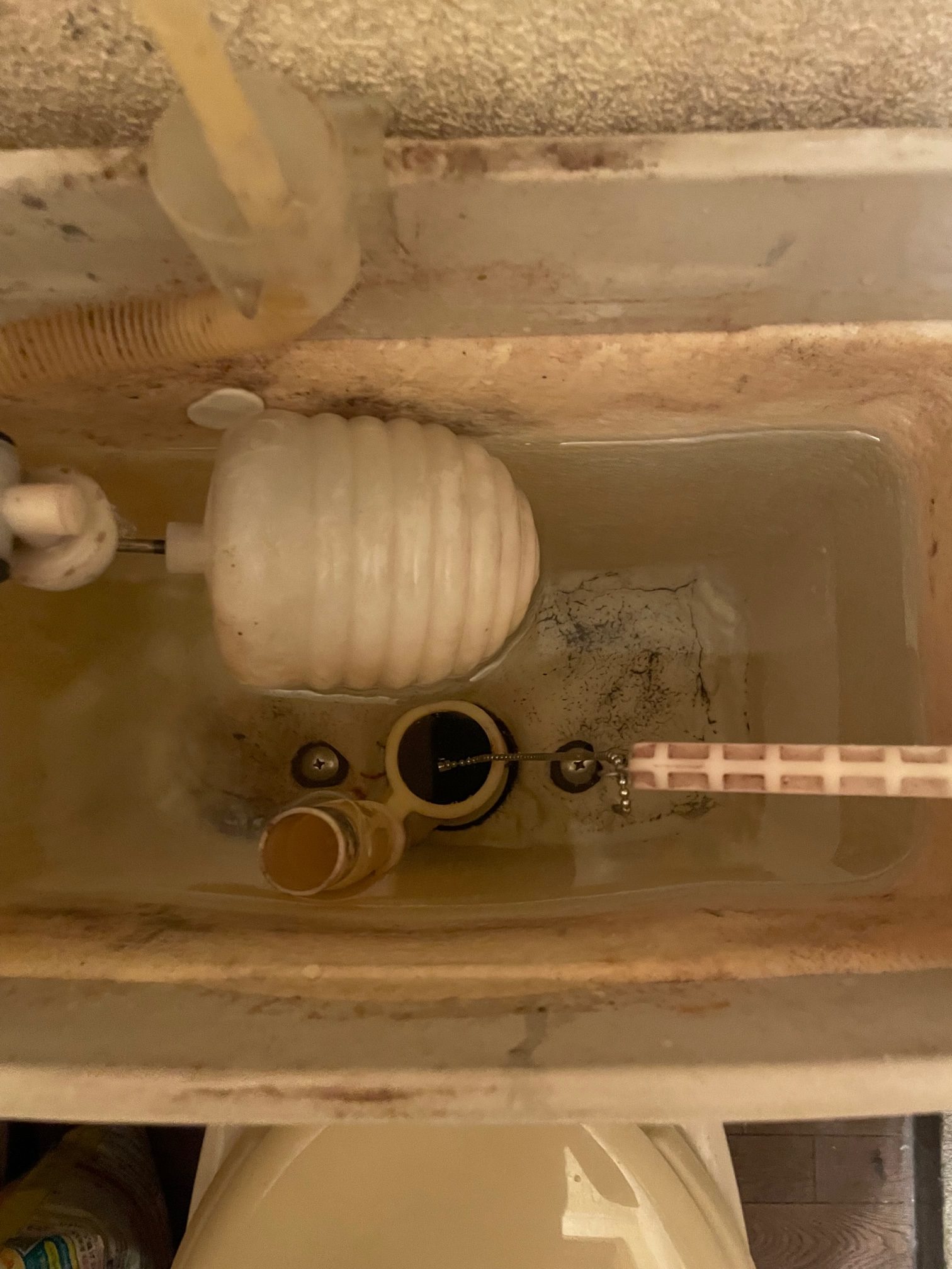 タンクの中にあるゴム玉という部品が劣化により痩せてしまい、隙間が生まれて便器に水漏れしていました。
