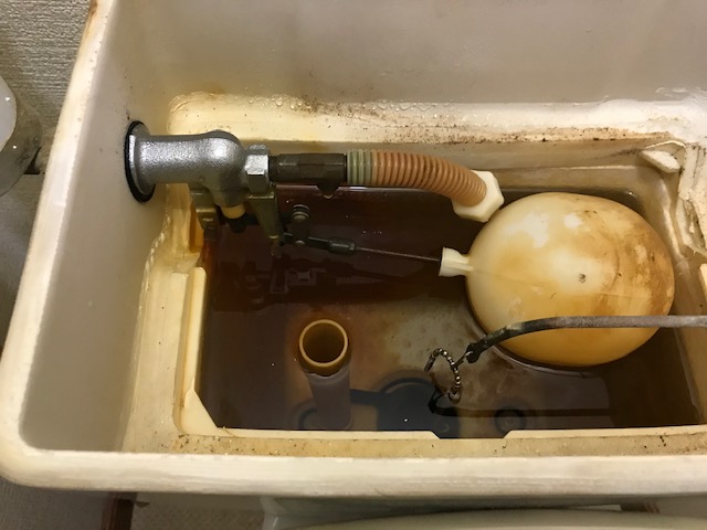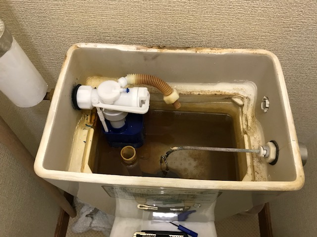 タンクの水が便器にチョロチョロ流れ続けており、タンク内の部品の劣化によって起こっていました。