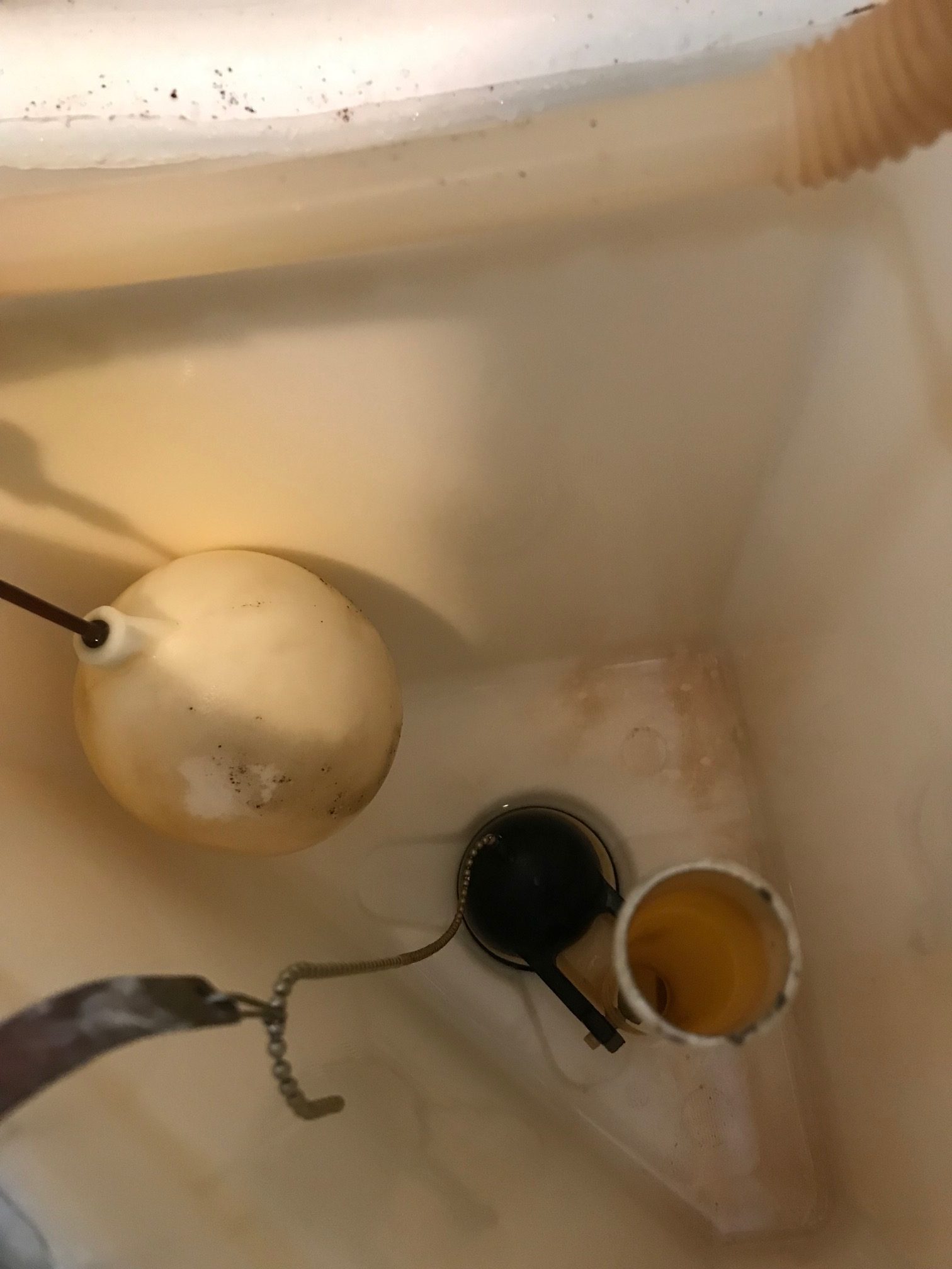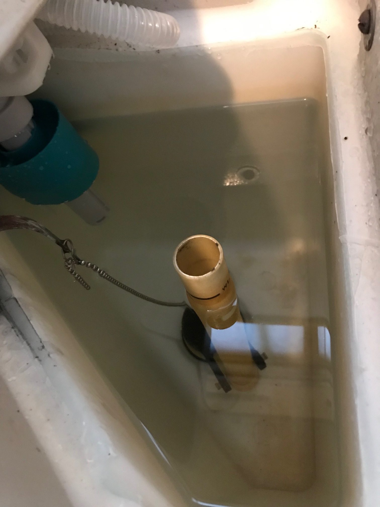 タンク内を覗くと水がチョロチョロ出続けており、オーバーフローした水が便器にも流れ込んでいました。