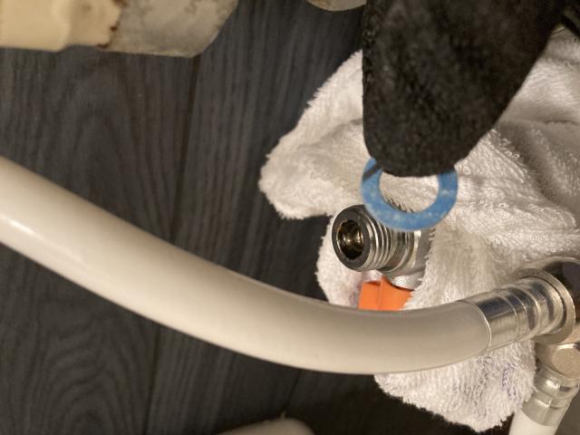 原因はパッキンの劣化により隙間が生まれたみたいで、新しいパッキンを取り付けなおして症状は改善しました。