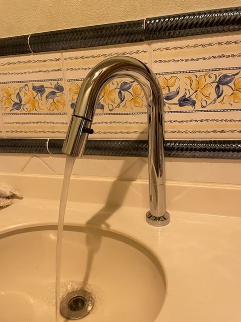 共用トイレの洗面蛇口が空回りしてしまい水が出せない状態でした。