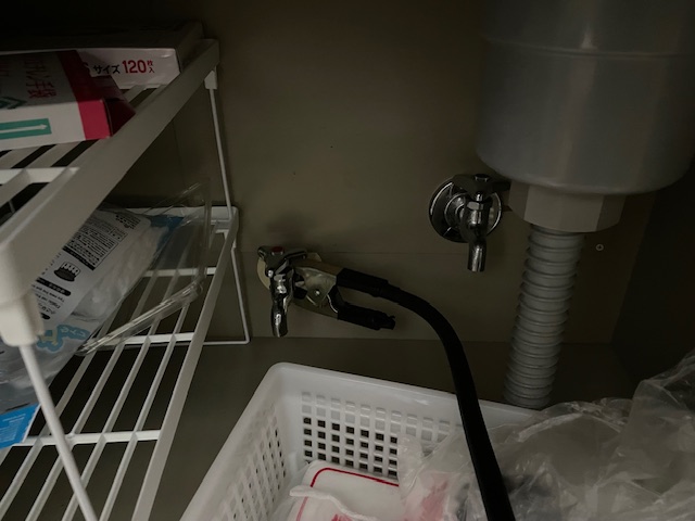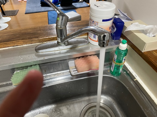 台所のお湯側だけ水が出ない状態で、他の経路は問題ないとのことで凍結と思われます。